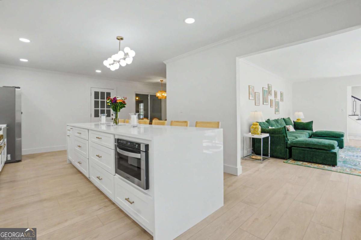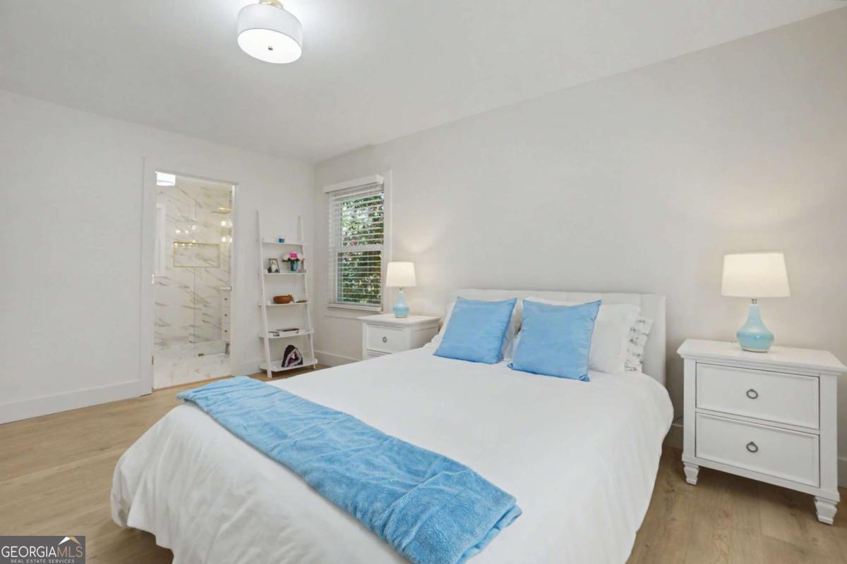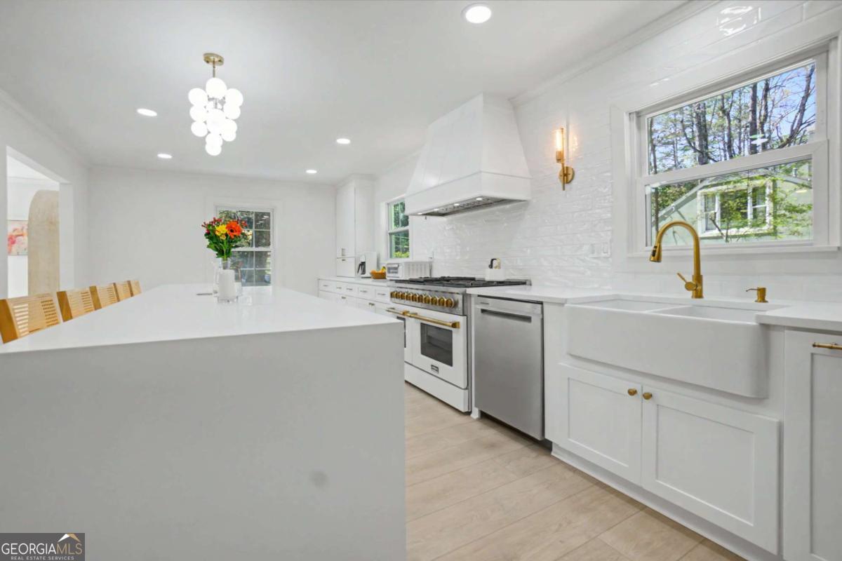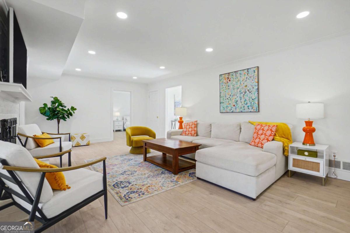 At 204 Devonwood Drive, first impressions are not just memorable-they're layered. It's hard to say what captures your attention first: the handcrafted mailbox by a local artisan, the lush, storybook front yard, or the striking iron door and window that beautifully blur the boundary between indoors and out. Perhaps it's the warm glow of the lanterns and sculpted topiaries that quietly signal that you're somewhere special. This beloved neighborhood home is a timeless two-story white wood and brick home, thoughtfully reimagined for a refined, modern lifestyle. Inside, every surface has been intentionally curated to create a light-filled sanctuary that feels both elevated and deeply inviting. Just off the entry, the front "Zen Den" offers a rare and magical retreat-perfect for quiet mornings, meaningful conversations, or simply enjoying the peaceful presence of nature, where birds, deer, and hawks become part of your daily backdrop. The family room glows with natural light by day and transforms into a cozy haven by night, centered around a real wood-burning fireplace-ideal for relaxed evenings and movie nights. Nearby, the sunroom is a standout favorite, offering serene, panoramic views that bring the outdoors in and create a sense of calm year-round. At the heart of the home, the newly designed kitchen is both stunning and functional, featuring an 8-burner professional range, custom vent hood, abundant storage with oversized drawers, and a dramatic 11.5-foot waterfall island that naturally becomes the gathering place for everyday living and entertaining. Wide-plank white oak luxury vinyl floors run throughout, complemented by modern baseboards and trim that add a clean, architectural finish. The main-level owner's suite is a true retreat-beautifully appointed and highly functional, with a spa-like walk-in shower, custom closet, and the convenience of a dedicated laundry area. Upstairs, a second primary suite offers exceptional flexibility, ideal for multi-generational living, guests, or those seeking additional privacy, complete with its own spacious ensuite bath and walk-in closet. Outdoors offers multiple spaces for al fresco dining, roasting marshmallows at the fire pit, or play. Beyond the home, the North Springs community is known for its warmth and connection-where neighbors greet each other by name, conversations happen organically, and a genuine sense of community thrives. With its rolling hills and quiet streets, the setting feels like a peaceful mountain escape-yet you're just minutes from Sandy Springs, downtown Roswell, Dunwoody, and Buckhead. This is more than a home-it's a feeling, a lifestyle, and an opportunity to live beautifully, both inside and out.